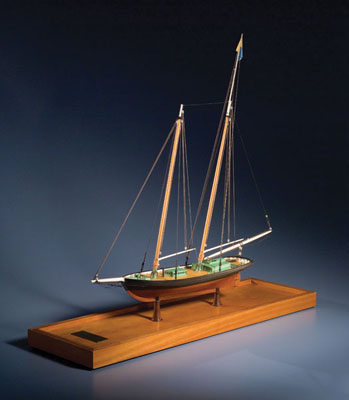 Dream, Full-hull ship model, 1992 Rob Napier (b. 1946) Newburyport, Massachusetts Honduras mahogany, basswood, boxwood, ebony, glass, brass, linen, silk, rice paper 30 3/4 x 32 5/8 x 8 7/8 in. Collection of the artist Photography by Jason Dowdle